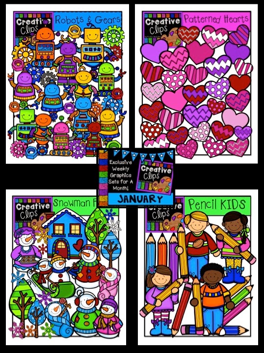 Yesterday marked the end of my very first Creative Clips Club (January)! I was sad to retire this little baby, but very excited to take the awesome feedback from all of you and my survey to go to town with future sets. All the stuff you loved will continue and I will be making a few changes based on what other things you would like to see! Since the January Club is officially over and not available in my store anymore, I am going to review the sets that members received.